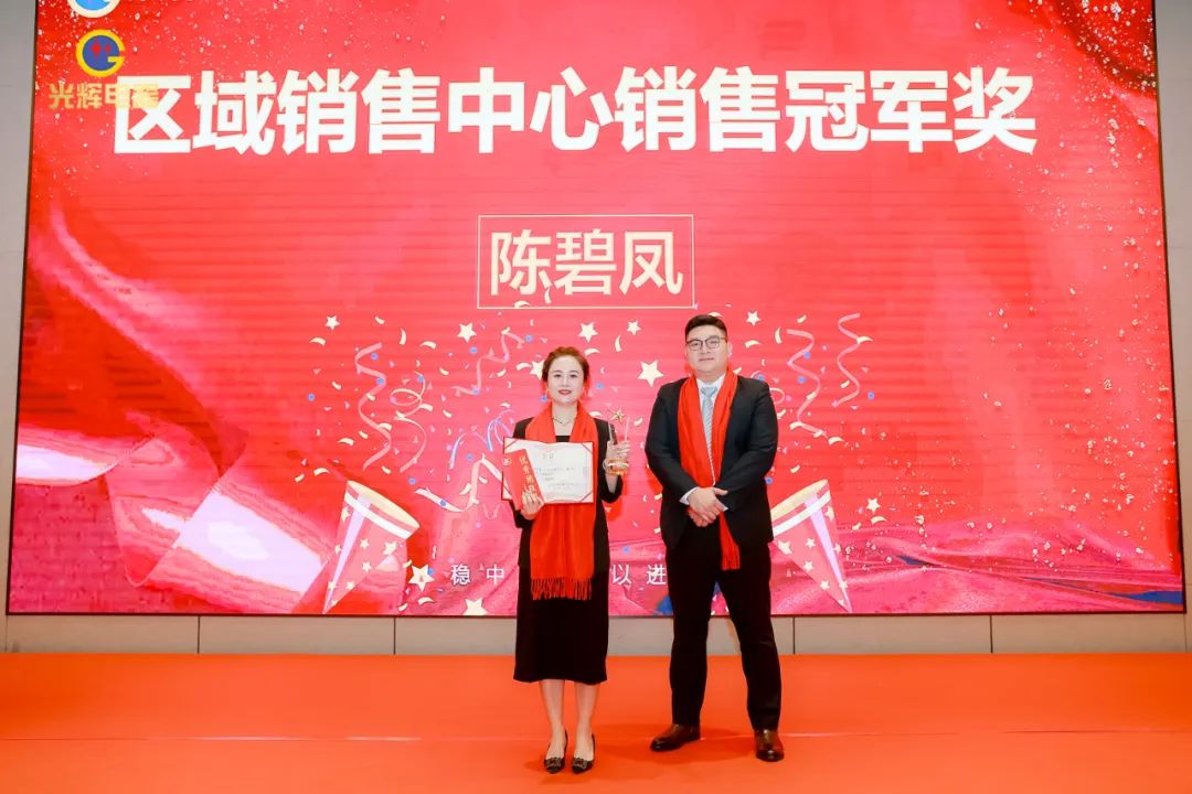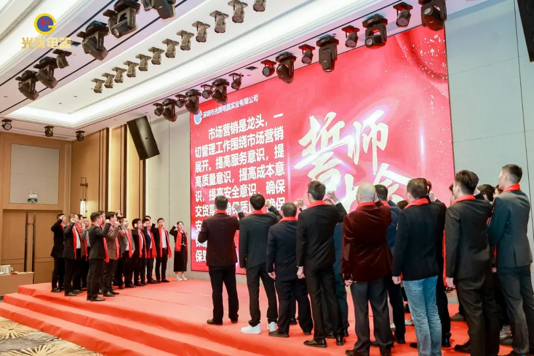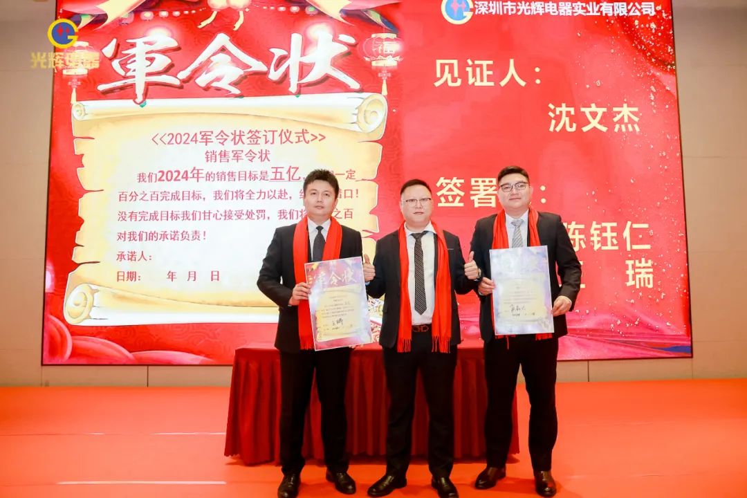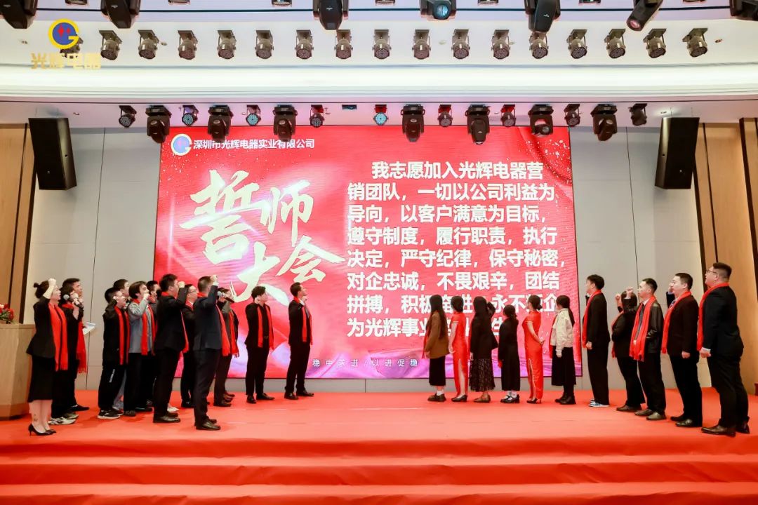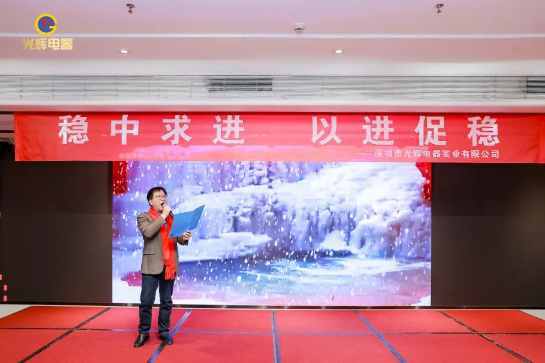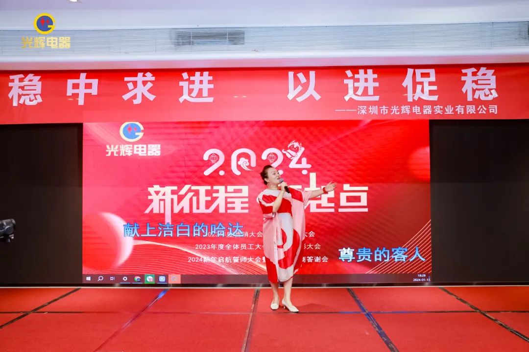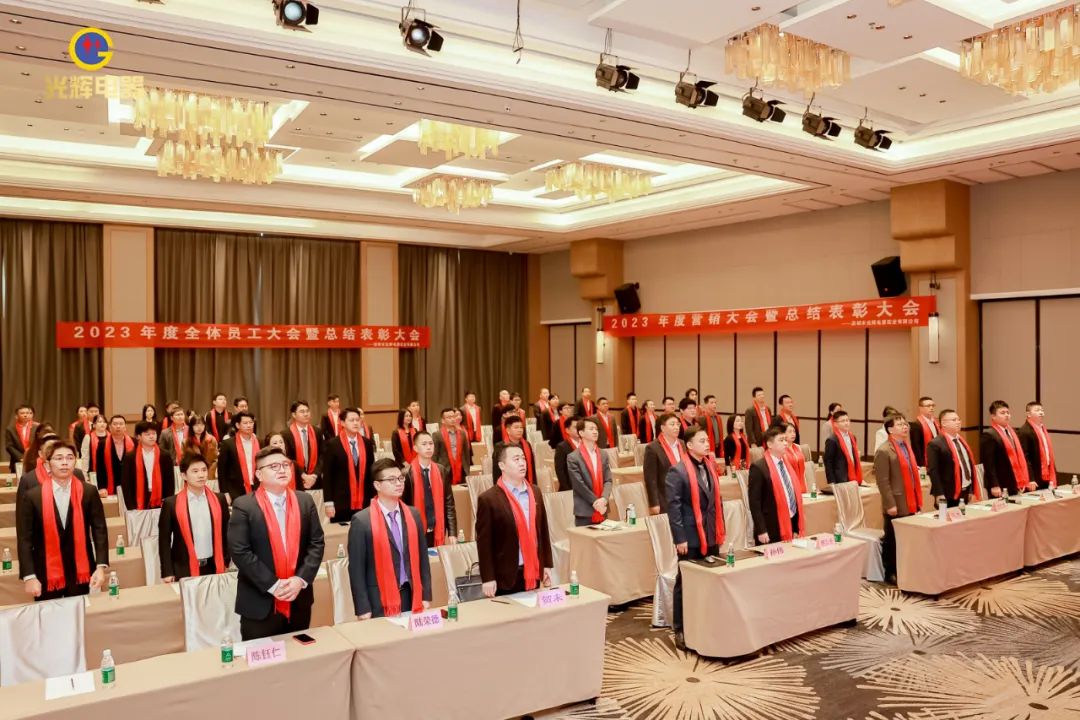 年会伊始,光辉公司董事长蔡宗光发表激情演讲;行董事兼总经理孙伟作2024年规划;常务副总贺未作2023年工作总结;他掷地有声地向大家描绘了2024年全新蓝图;营销中心总经理沈文杰作2024年营销中心工作部署。